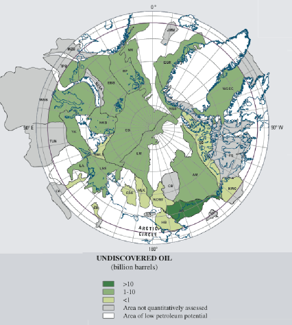 Com o avanço do aquecimento global, o derretimento das calotas polares tem exposto vastas reservas de recursos naturais outrora inacessíveis. Segundo estimativas do U.S. Geological Survey (USGS), o Ártico pode abrigar cerca de 13% das reservas mundiais não descobertas de petróleo e 30% das de gás natural. A região também é rica em minerais estratégicos, como níquel, zinco, cobre, ouro, urânio e especialmente terras raras — insumos fundamentais para tecnologias limpas, eletrônicos avançados e equipamentos militares. A Groenlândia, por exemplo, abriga algumas das maiores reservas de terras raras fora da China que se estima poder chegar a 25% das reservas globais.